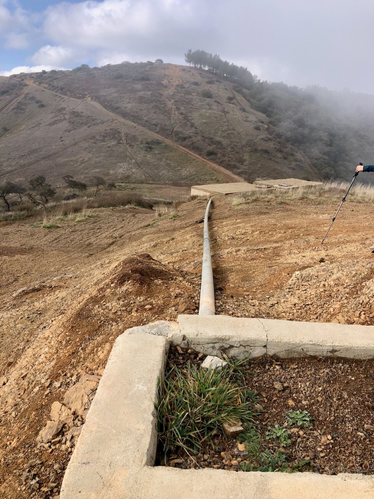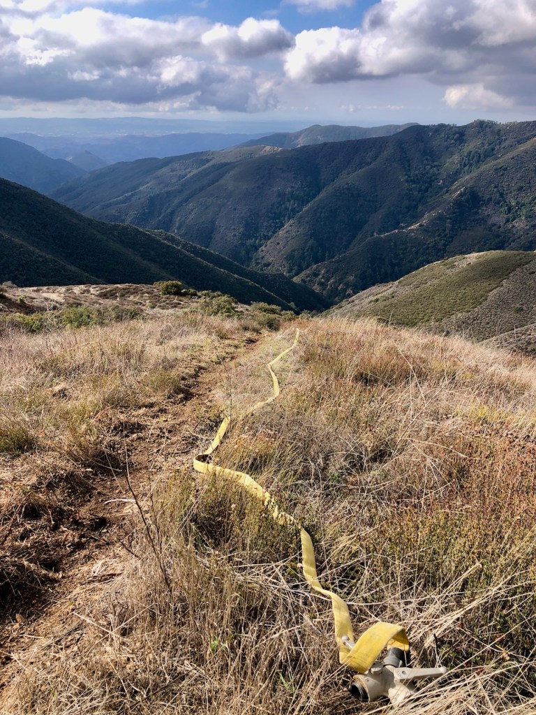 We passed by fire hoses, installed in the ground, loosely strung down the hillsides.