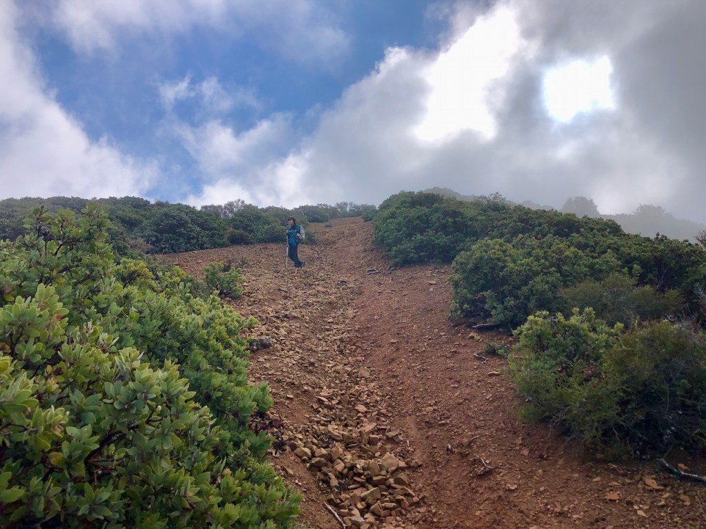 As we began the climb, we waded through overgrown brush along a rocky trail, dotted with pines, and manzanita.