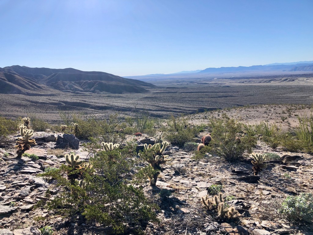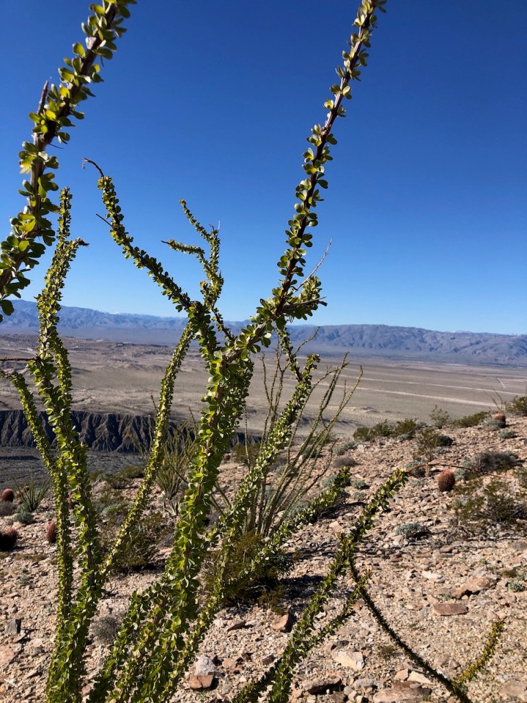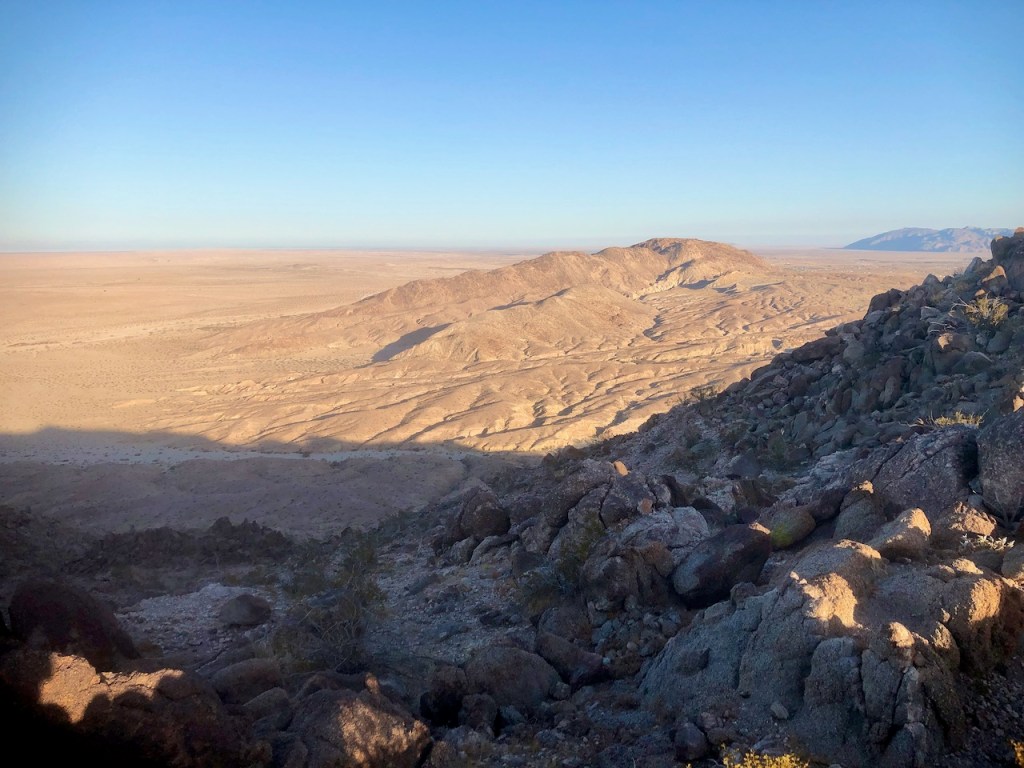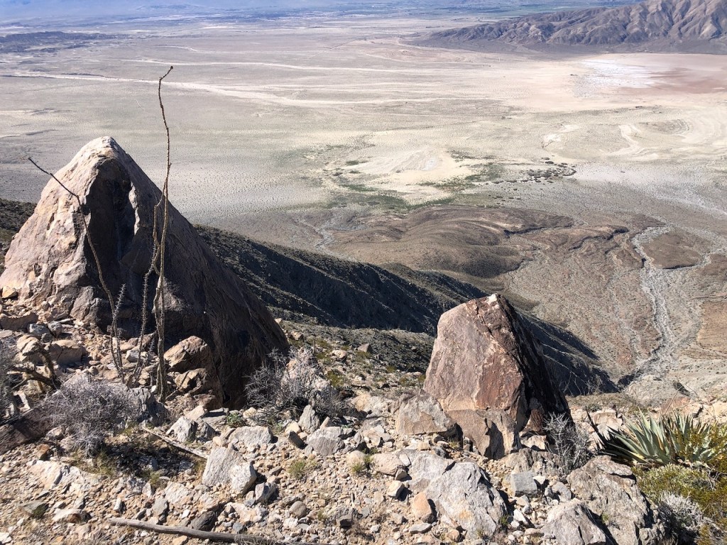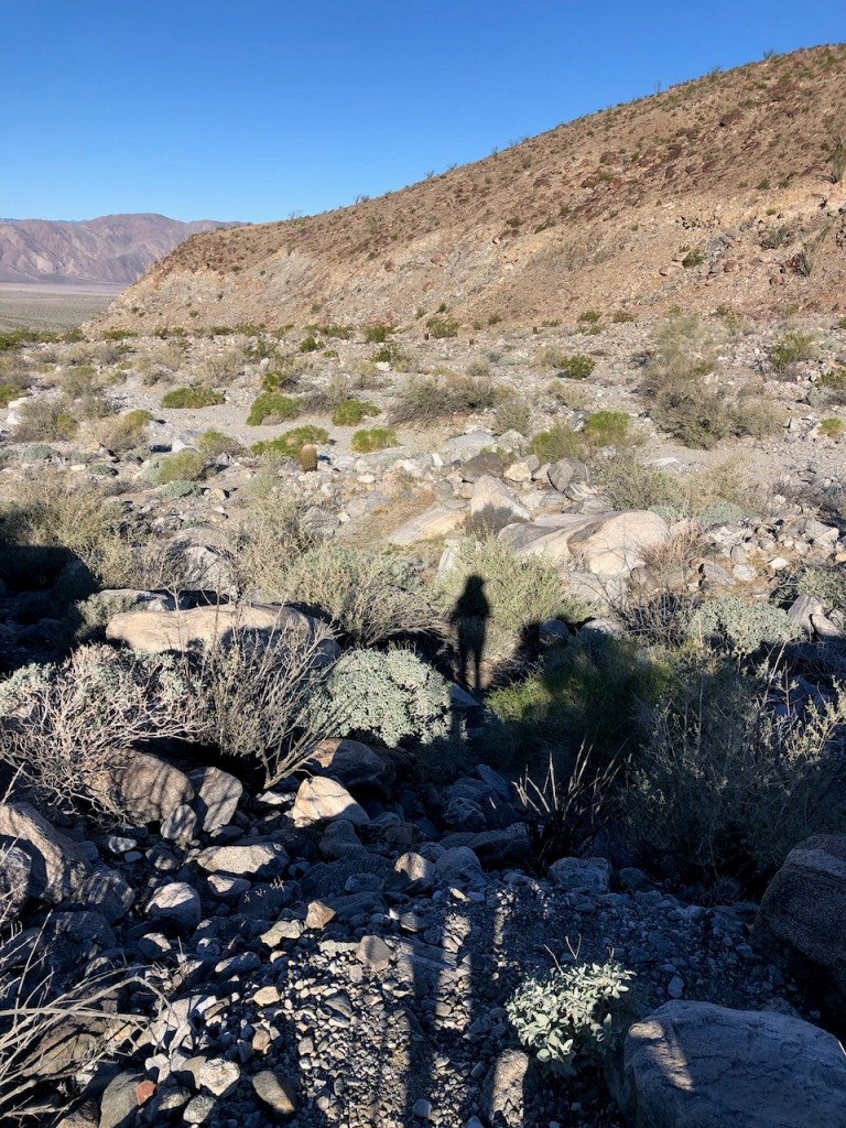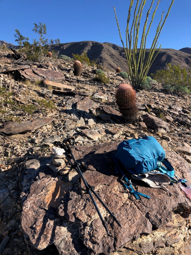I gazed back out over the expanse of Anza Borrego, past the backlit cholla, with their silhouettes standing in stark contrast with the valley below. I was not feeling in a rush, but more contemplative today. I wanted to stop frequently and take it all in. At the same time, I knew I needed to keep steadily gaining, were I to make it to the peak.