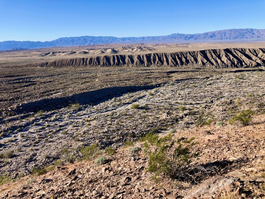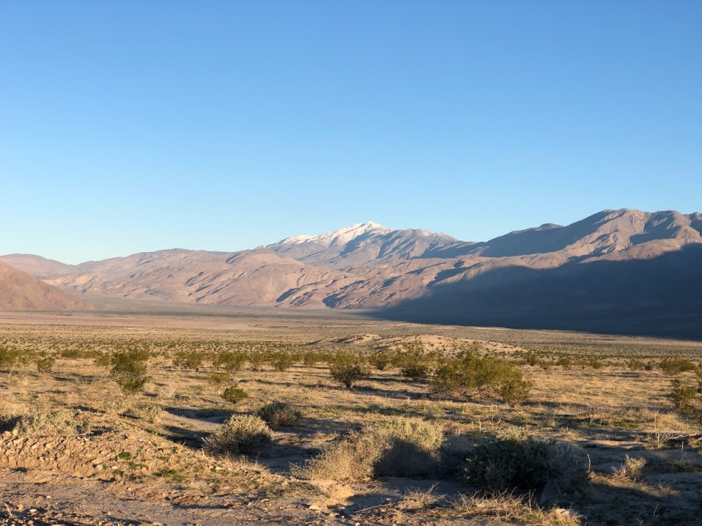 The wide swath of Coyote Canyon was to my left, a place accessible only via 4WD. Distant snow-capped peaks were all around now. They stood out amongst the otherwise muted hills.