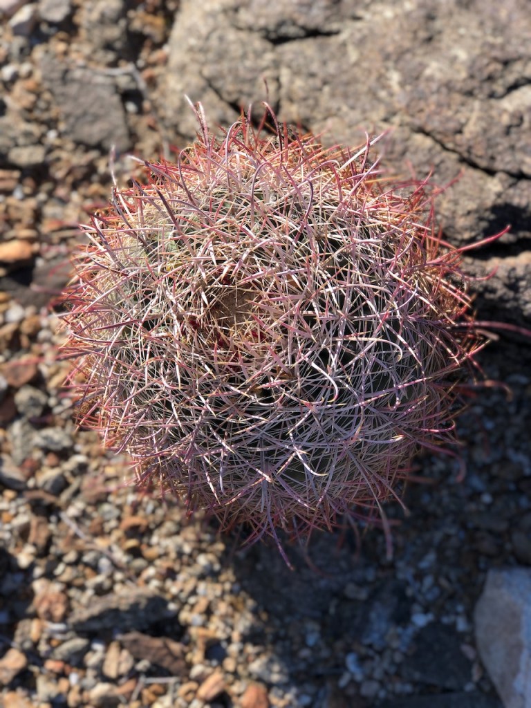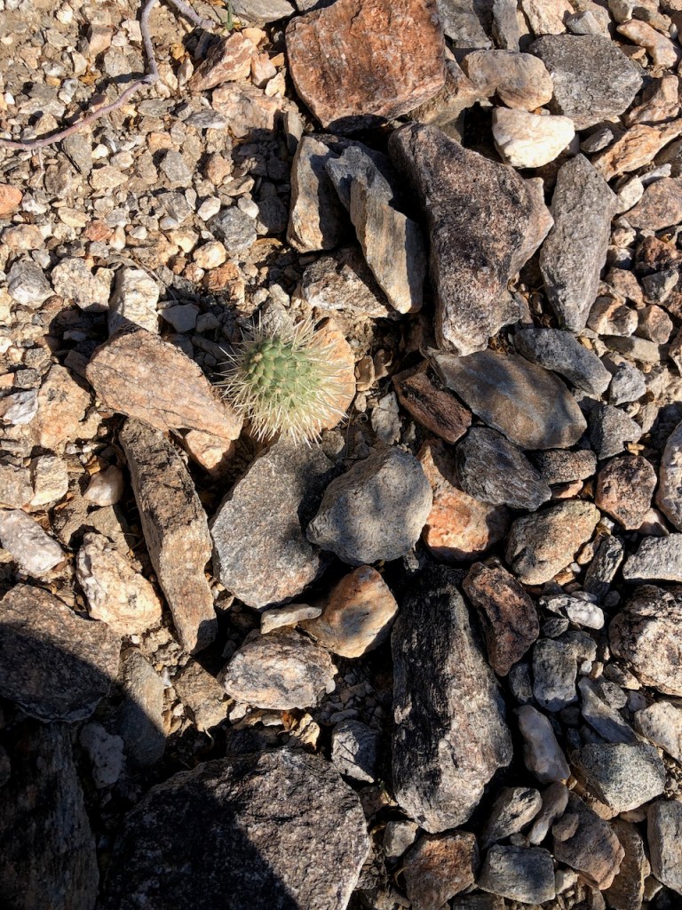I started to notice puffs of cactus along the trail. The here cholla seemed to be shedding and scattering small round spiky light green cactus balls, all along the trail. They were like landmines, ready to pierce into the soft part of a trail running shoe or be accidentally brushed against, potentially piercing an ankle. I would feel terrible for the poor dog’s paws, that happened to be hiking here.