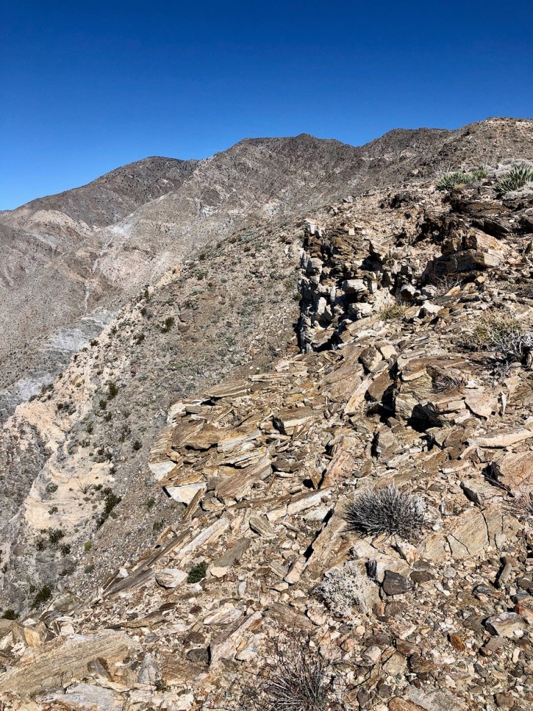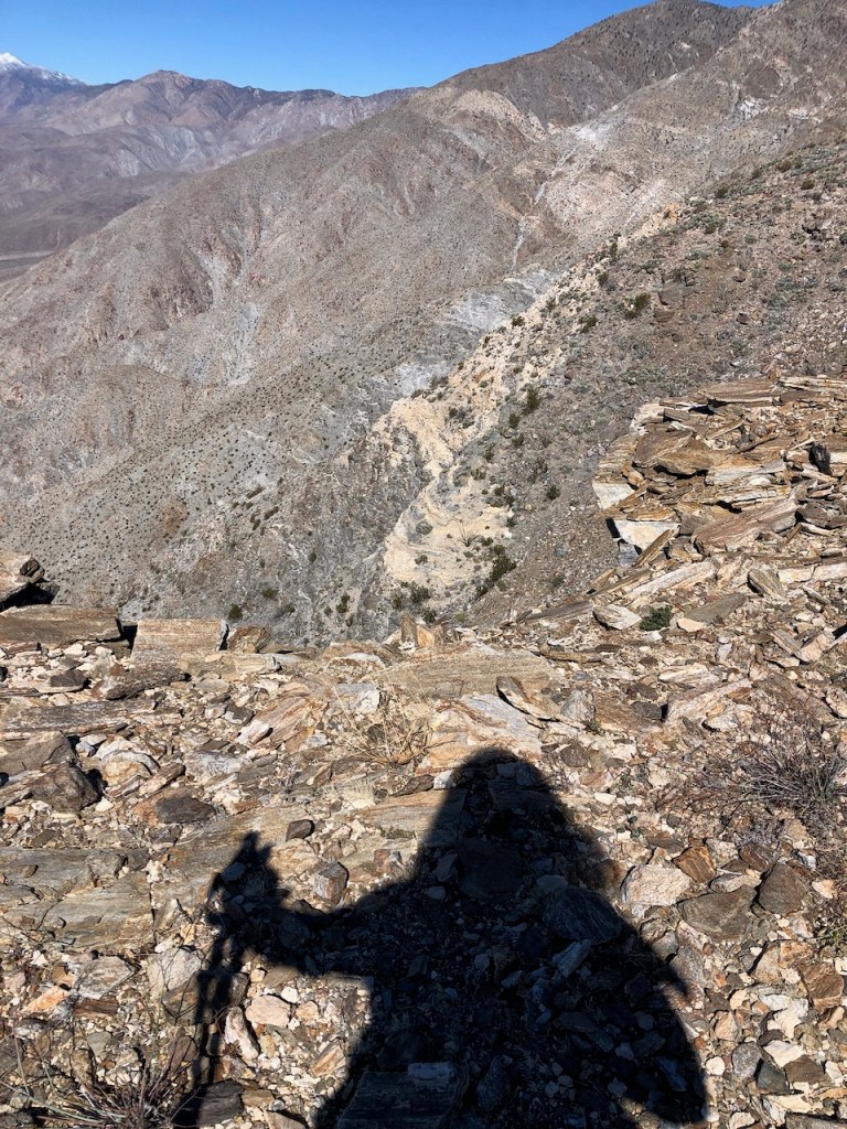 I was officially out of time, and it would be dark at 5 pm today. Now the challenge was to get down the mountain, faster than I went up, to make up time, so I was not hiking alone in the dark, with the company of desert sidewinders. I tried jogging as best I could. With every step, my toes got smashed in the toe box of my trail runners, with how steep this was. It would be four more hours of toe-smashing. As I write this, my right foot still has not recovered from this hike and is still in pain.