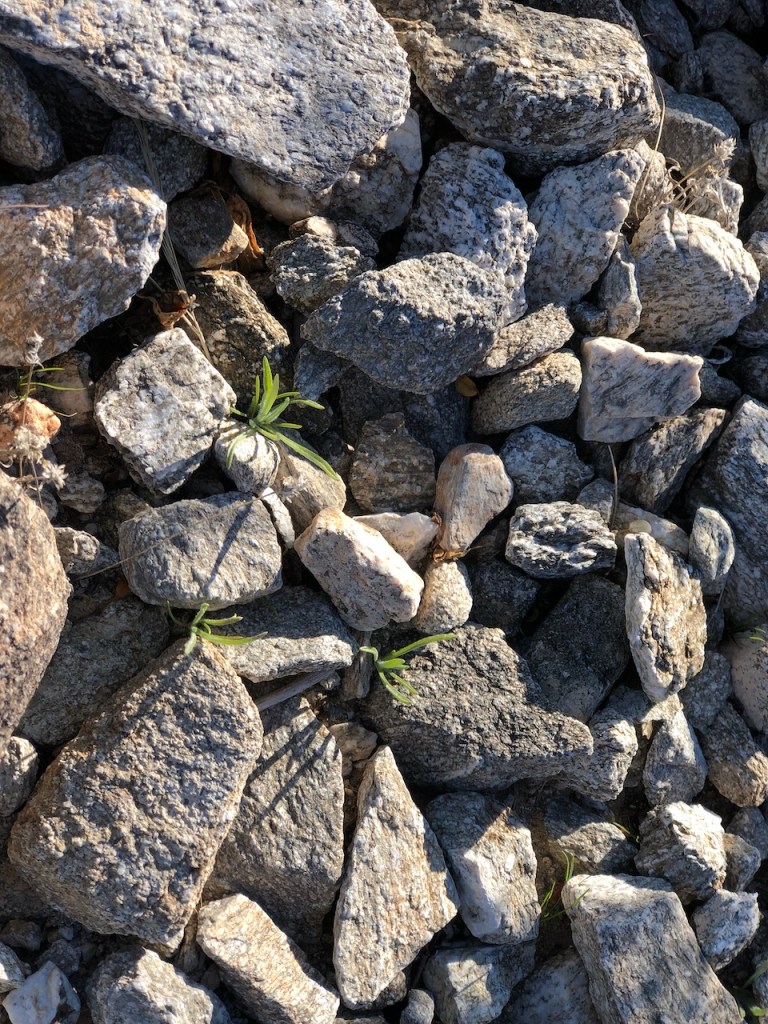 By about 9 am, I had climbed just over 2 miles, and the terrain had begun to change. The softer decomposed granite gave way to larger somewhat rounded, flat rectangular flakes of granite. These stones would grind together constantly as I walked, and it was as if someone was writing on a chalkboard, but under my feet.