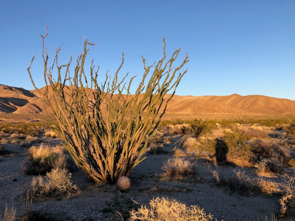 The rockfaces were aglow at this hour. It was around 7 am when I arrived at an overlook and gazed out over the desert valley below. Back when I first took a trip to the desert, I had made my own assumptions about it. Thoughts of a dark, desolate, and isolated place would come to mind. Of course, the desert is anything but, especially when the ocotillo were lit up aflame in red spring flowers, like some burning bush. So here I was in Anza Borrego once again.