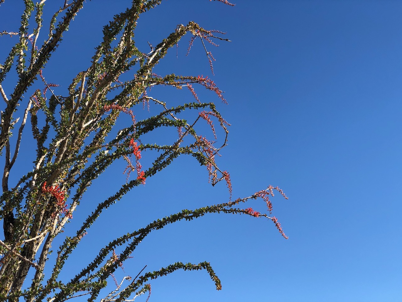 As I trod along through Hellhole Canyon, on a flat wide trail, I passed by many tall Ocotillo in bloom, along with various other tiny desert wildflowers, mostly in shades of purple, yellow, and white.