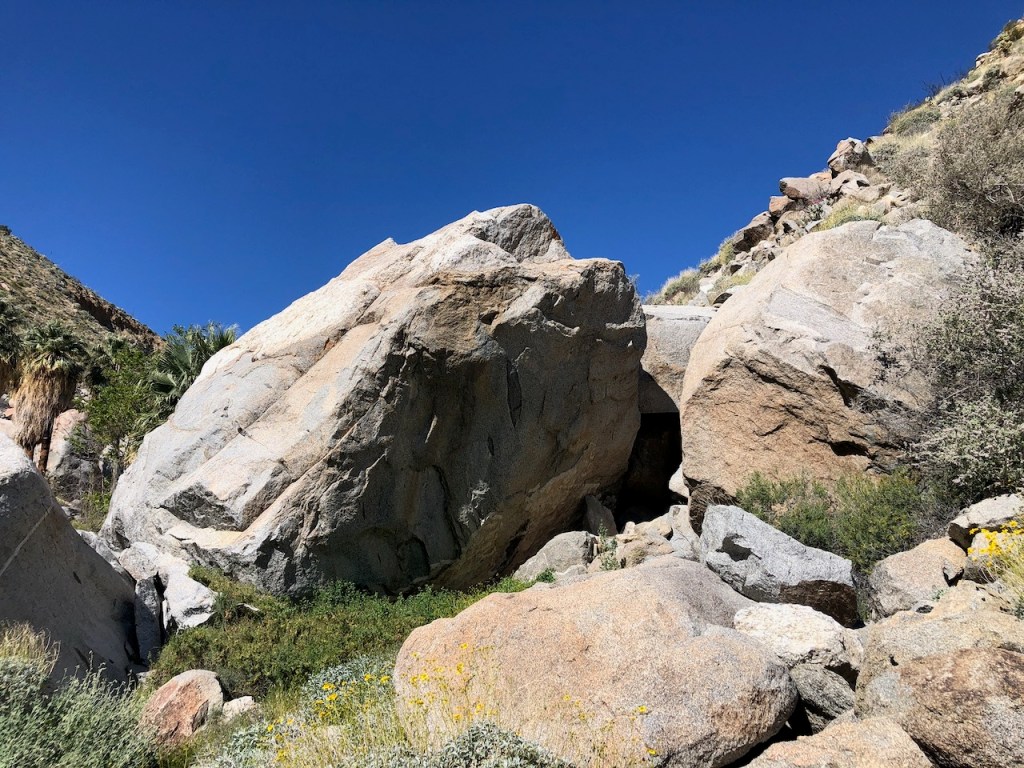 As I ventured further up Hellhole Canyon, in Anza Borrego, I entered a rock garden and oasis. There were absolutely massive boulders here.