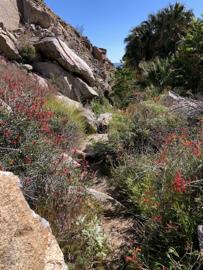 I had never been to the waterfall before, and had no idea what to expect. I came to an green palm filled oasis, and the trail became rocky.