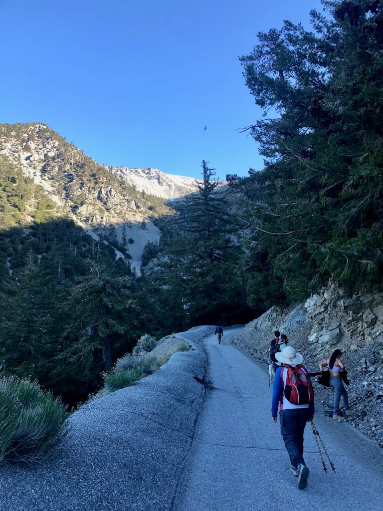 We headed up the paved first half mile of fire road and I could see snow-capped Mount Baldy in the distance.