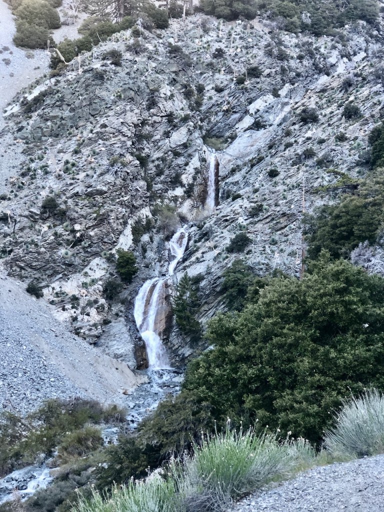 We reached beautiful cascading San Antonio Falls to our left, flowing at full capacity with all the snowmelt. We debated potentially hiking down to the falls, another quarter mile or so, but decided bagging the peak was the priority. We could always get a closer look on the way back.