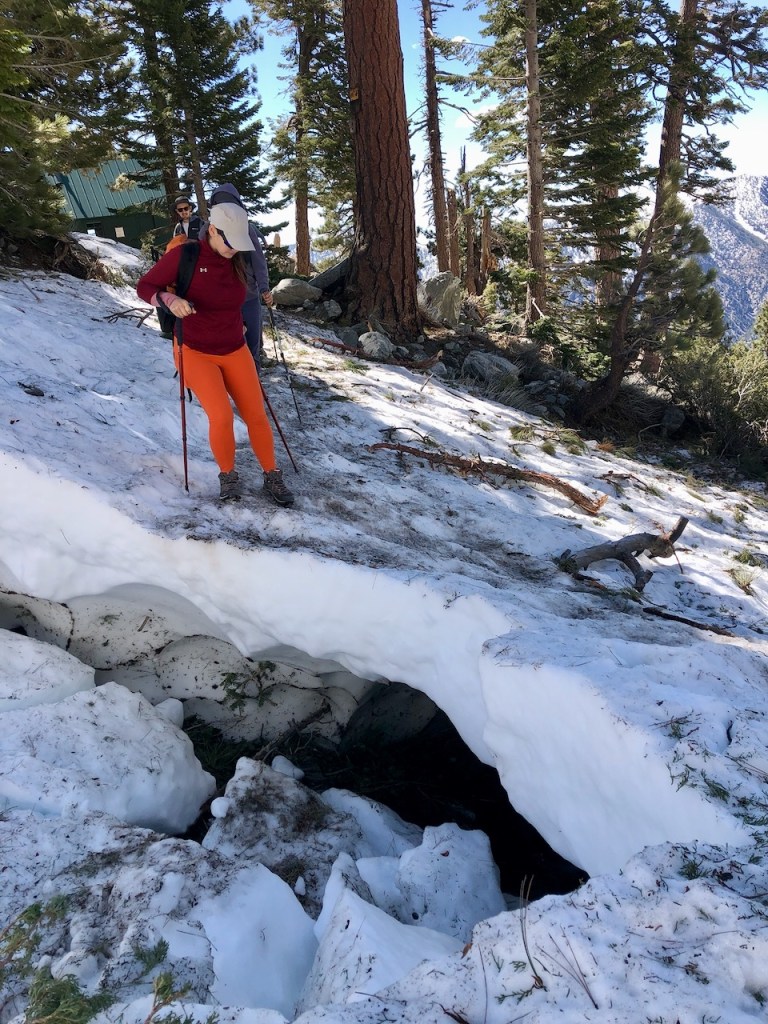There was a snow bridge over the creek, about 4-5 feet high. I crossed it, while fully knowing it was sketchy. My companion was not able to do it. She was afraid it would collapse. When fear has you in its grip, and you’re not confident, sometimes turning around is the best option.