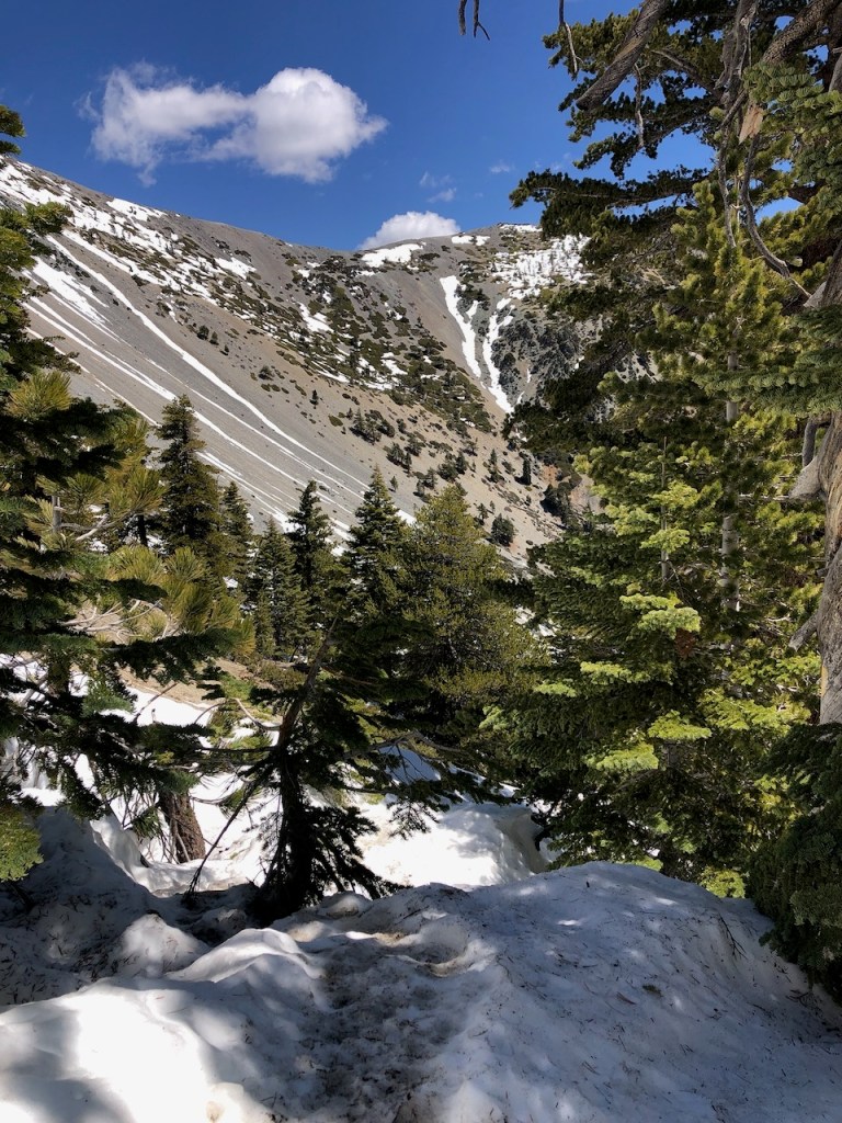 There were scattered pines dotting the mountainside, up the steep grade on the way to the summit.