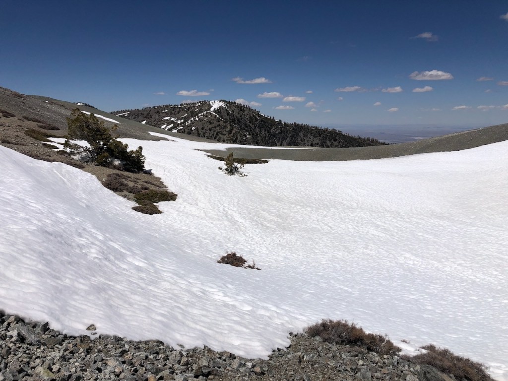 But within a few more minutes of hiking, it was clear, the hillsides up ahead were covered in a thick blanket of snow, with just a few areas melted off.