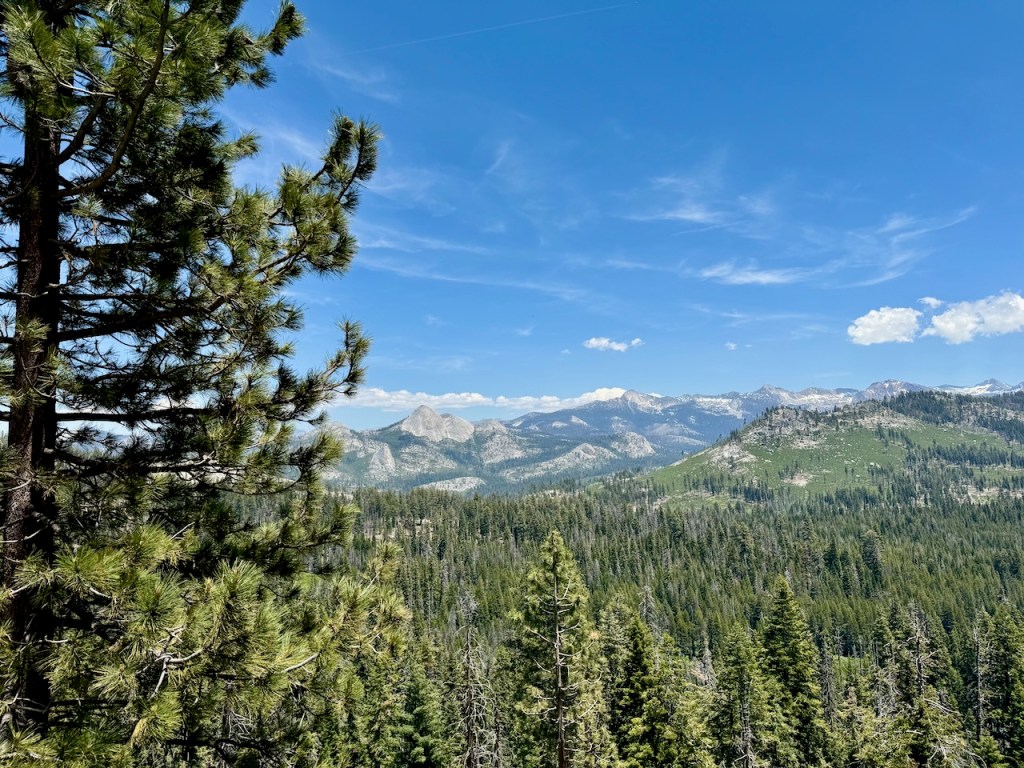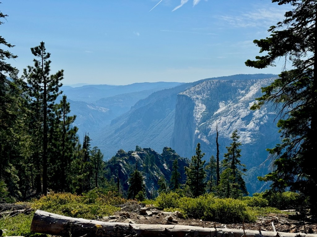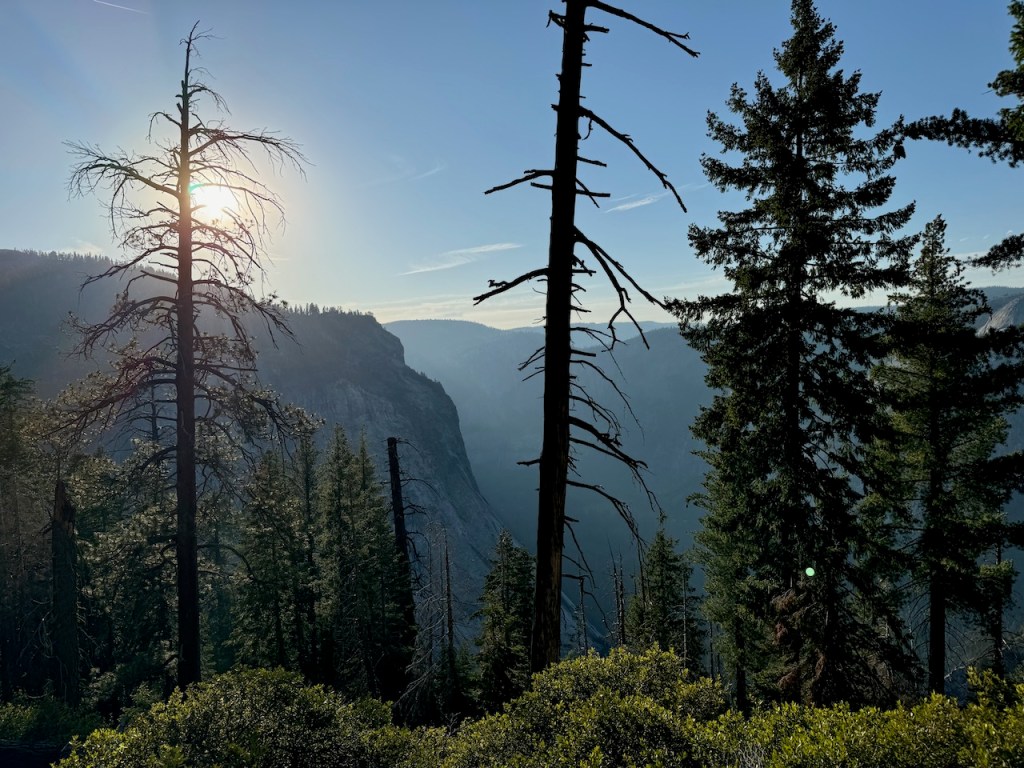 I was finally on my way and began the drive through dense woods, which eventually became a narrow highway hugging the cliffside. It took another 45 minutes to reach the trailhead. I drove steadily upward in elevation, passing by deep canyons, where within them were the charred remains of a dense forest, a victim of a huge wildfire two years prior. I had a backcountry permit that year, which was not canceled and refunded, even though I feel it should have been given the dense smoke the fire produced in the valley. I stopped off at a few scenic overlooks along the drive. It was particularly beautiful after making the turn onto Glacier Point Road. The views near Mono Meadow were stunning and gave a nice glimpse of what to expect, the pristine high-country beauty of the Sierra.