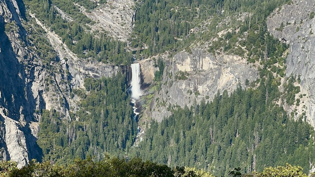 I had no idea how busy it would be along the trail today. I passed just a few hikers making their way back from the falls but basically was hiking alone. There were at first a few short switchbacks followed by one long continuous switchback. As I continued further into the valley, I caught a glimpse of Vernal Falls, along with Nevada Falls. The views along the Panorama Trail were spectacular.