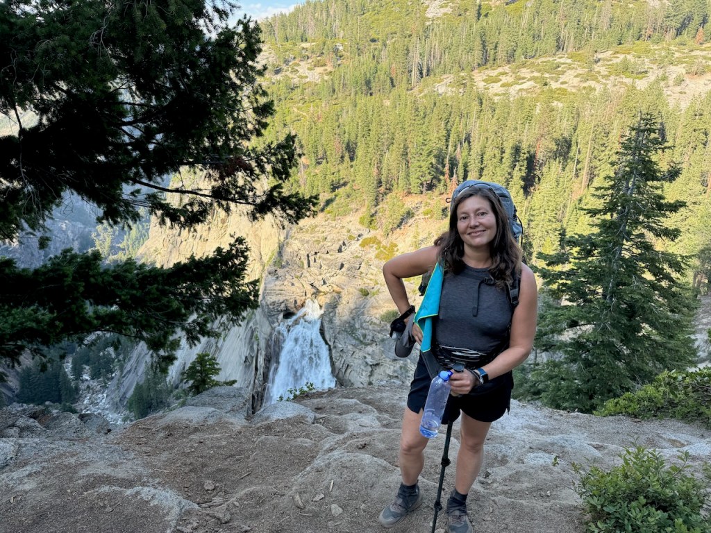 A couple was perched there, at the overlook. They quickly got up, as if to make room for the next person to enjoy the falls. They took my photo, with the falls in the backdrop, and proceeded to climb back out of the valley back towards Glacier Point.