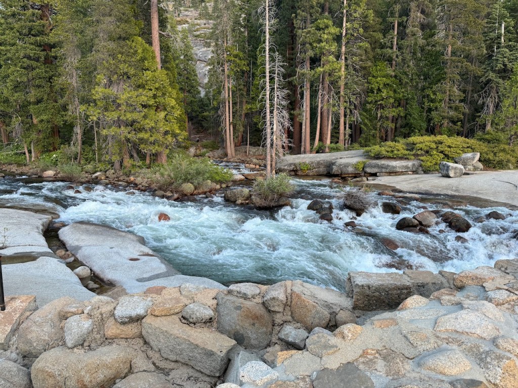 Instead, I crossed the bridge, taking in all the beauty of the river, with its smooth slabs resembling a waterslide, intermingling with large boulders, and eddies, with small pools one could take a refreshing dip in. This was a destination in itself, yet I continued on, heading further along the Panorama Trail edging ever closer towards my goal for the day, to camp at Little Yosemite Valley.