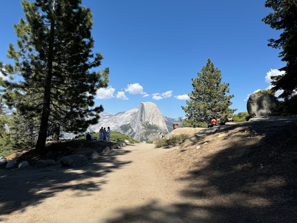 Glacier Point was bustling with tourists as I approached it, but I veered right, skipping this area, to head out on my journey. Something told me, the views along the trail ahead would be even more awesome, and to just keep going, since I could always stop there on the way back.