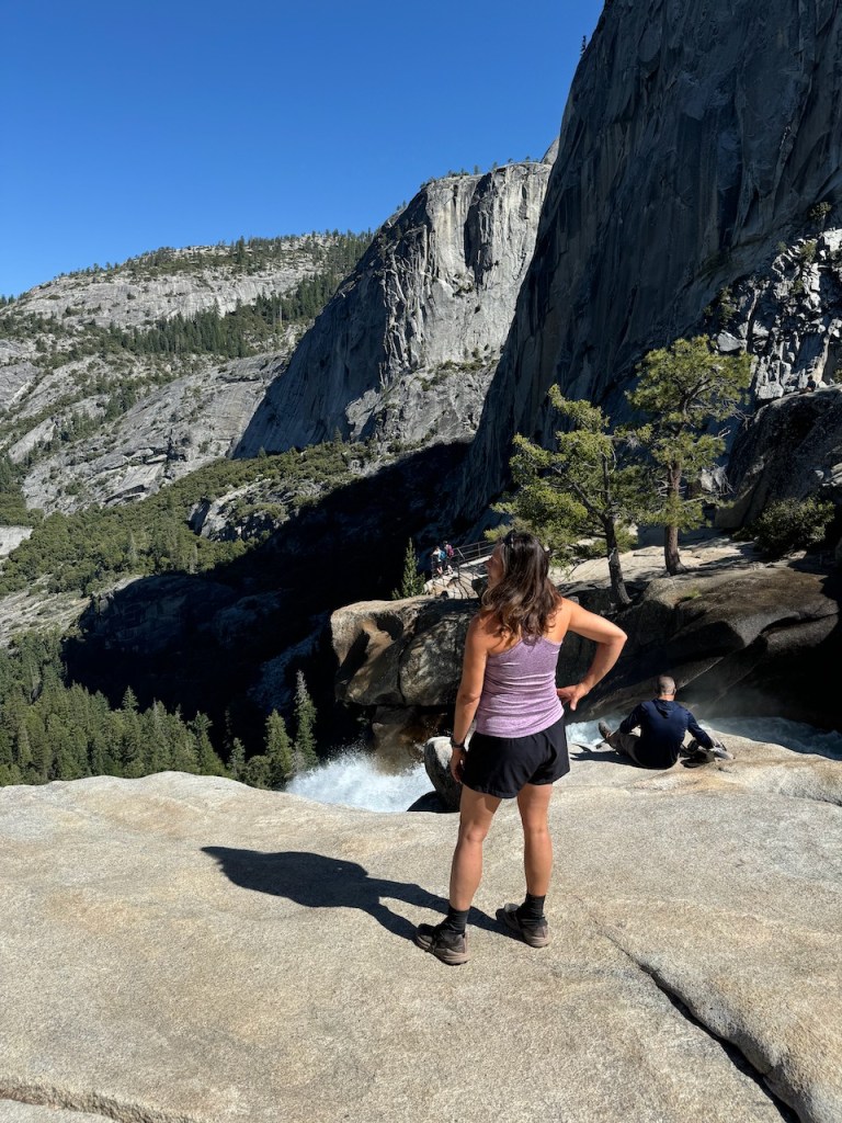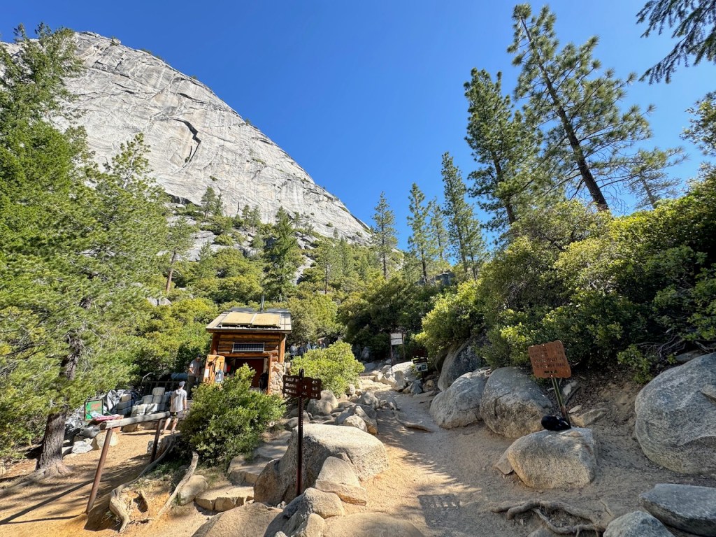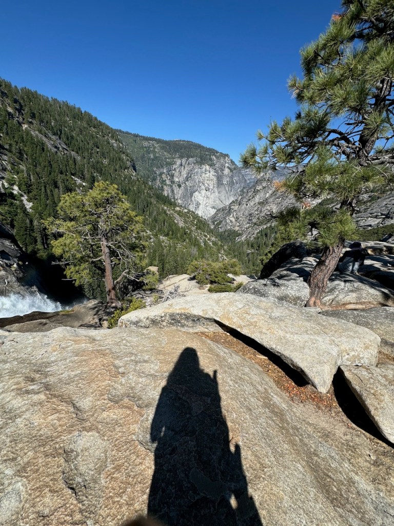 I made my way back to Nevada Falls, which sits below Liberty Cap, another massive granite dome. There were some pit toilets here as well, and a ton of people hiking around. The valley was getting crowded with it being Friday.
