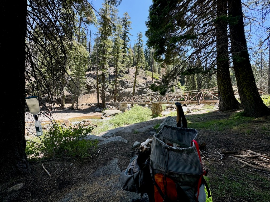 I parked myself, across the bridge on a shady granite rock, and proceeded to prepare my lunch as planned. It would be Pad Thai soup, which was something I had never had before. I had used the entire peanut butter packet, and most of the noodles from my Backpackers Pantry Pad Thai (serves 2). I had some noodles left, so I combined them with some dehydrated eggs, chomps beef stick pieces, and a packet of chicken bone broth. It was fine, but given how hot it was, a better choice could have been something cold. Since I did not have protein bars, only fruit, crackers, and jerky, I needed something more. Soup would have been great on a chilly morning at say Sunrise High Country Camp, near Tuolumne Meadows though.