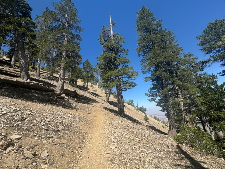 If you do decide to visit here, be aware that Highway 2 may be closed past this point, so check Cal Trans first. It does tend to get hot at this peak, despite rising to 9000 feet. If it’s a hot day I recommend starting at dawn, and leaving yourself 4-5 hours if you are unaccustomed to this type of climb. The miles are up all the way, and hence it is a great training hike. The trail tends to stay shaded in the late afternoon after 4pm, but early afternoon it may be baking hot. The hottest months to visit here are July – September. The early season in May and June have the best temps, though there may still be snow patches then. Here is a link to the alltrails map, if you go. Be sure to download it beforehand.