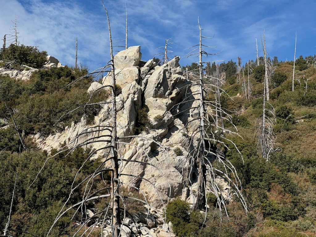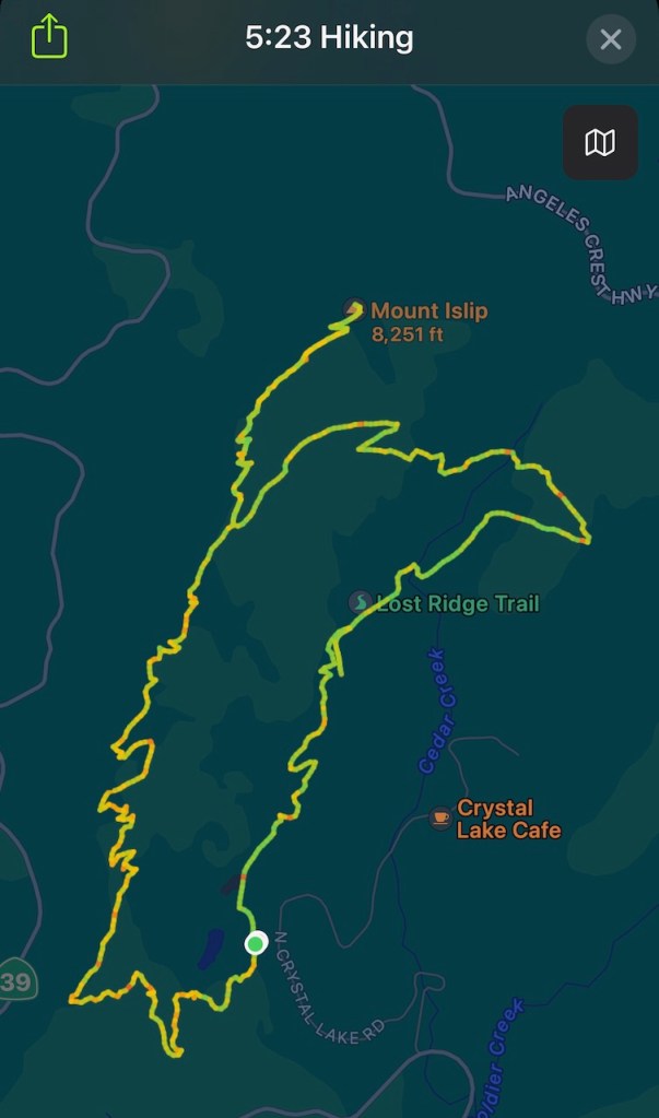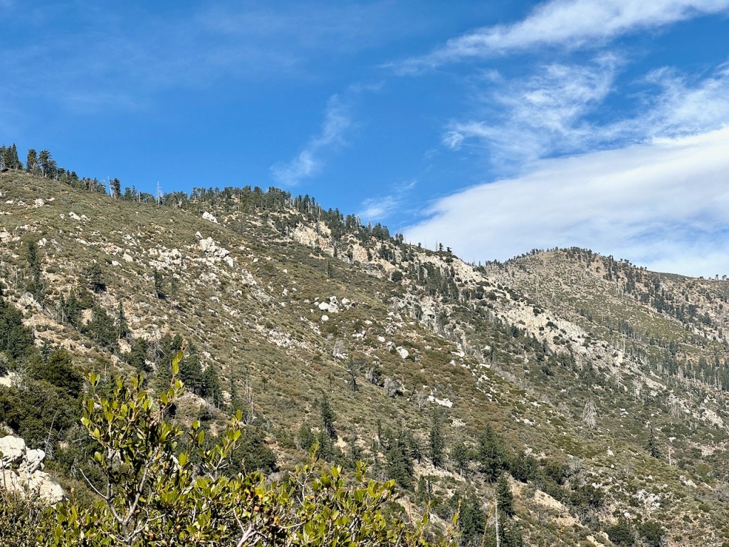 But there was one more adjoining peak I had not climbed, Mount Islip, which is included in the Sierra Club’s Hundred Peaks section. It’s a fairly popular hike, but with the closure of Angeles Crest Highway (SR-2) due to rockslides, a result of the atmospheric river that swept through last December, the more popular, and shorter route via Islip Saddle, has been difficult to access, leaving two other options. I could have started in the campground, taking the Windy Gap Trail up. I chose to undertake a slightly longer climb, hiking up Islip Ridge, which begins by Crystal Lake and is, popular with anglers.