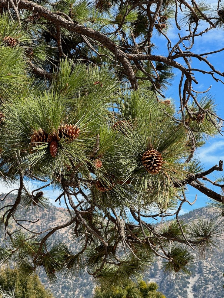 There were pine cones, acorns, and pine needles strewn along the trail. Fallen logs and branches lay about everywhere, ether a result of natural pruning or trail maintenance.