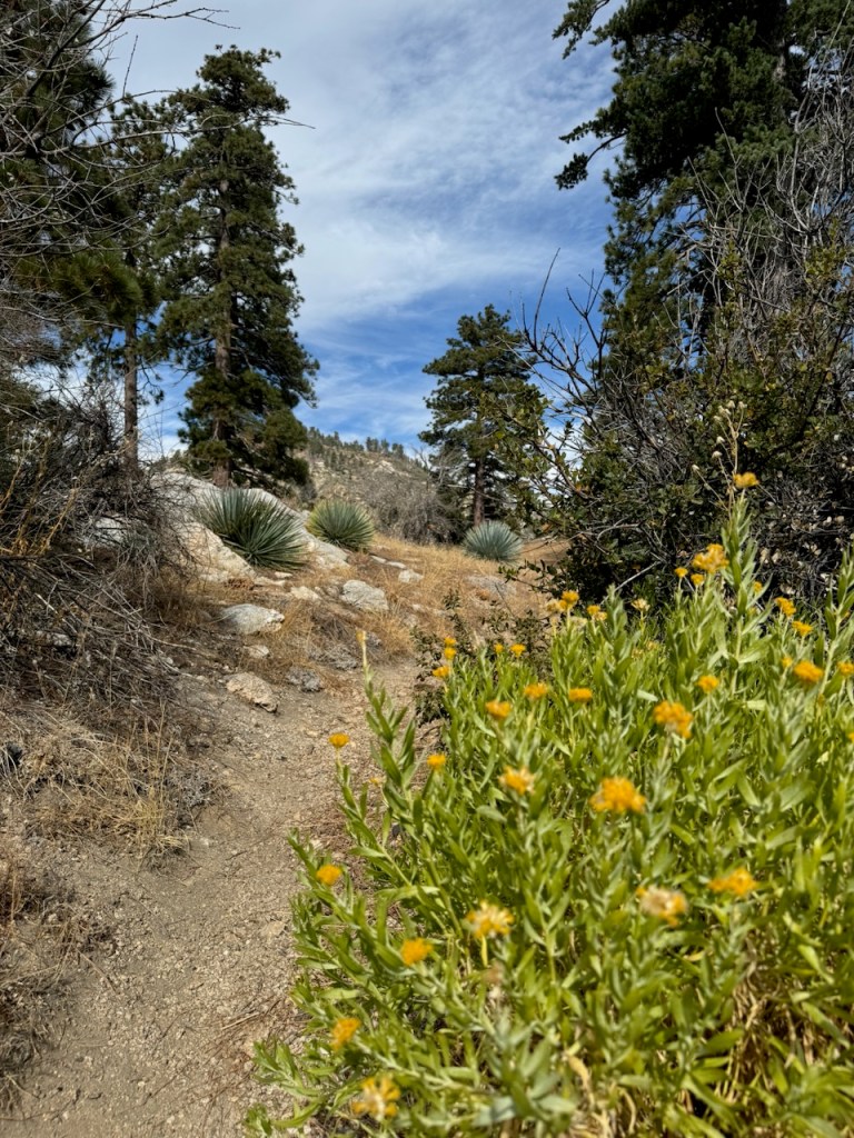 Despite being late fall, the bright yellow blossoms of Rabbitbrush were in bloom along the trail. I have seen this vibrant yellow shrub growing all along the adjoining hillsides, of the the nearby PCT, when I hiked to Mount Hawkins, a year ago.
