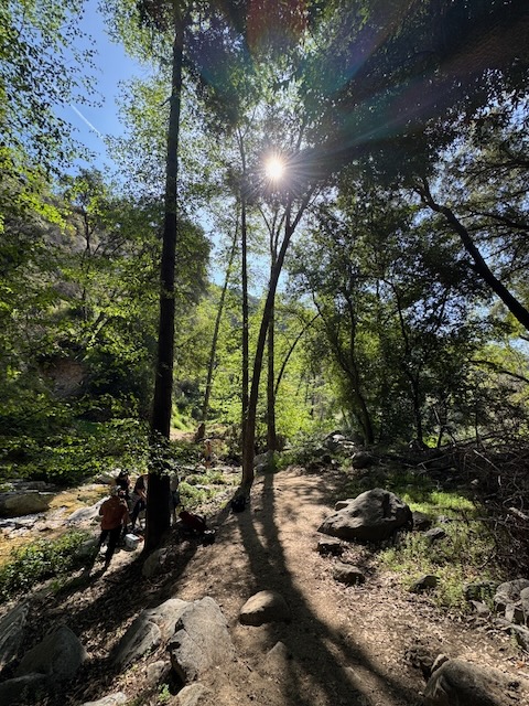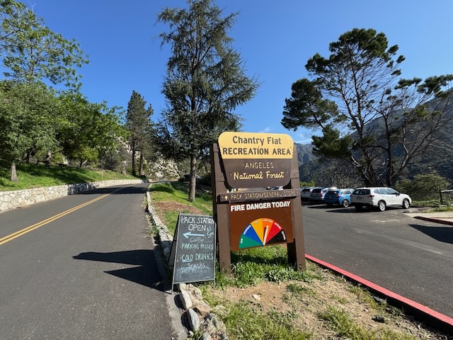 The hike began downhill from the newly opened Chantry Flats parking area. It has been closed since last year, when the devastating fires wiped out the area. This is the trailhead for hiking to Mount Wilson as well.