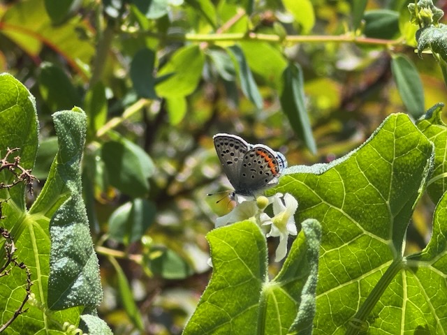 I noticed an Acmon Blue butterfly, perched in a flowering vine.