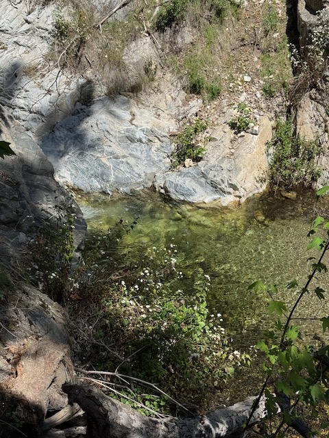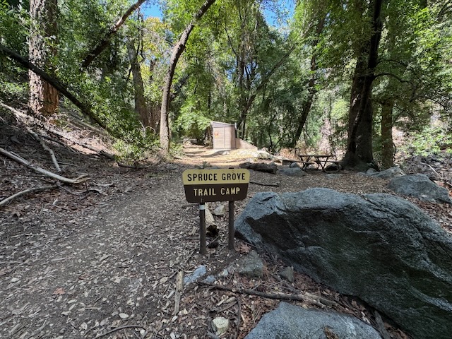 I made it to Spruce Grove which was about 3.5 miles from Chantry Flat. The campground was deserted, with its fire rings, and picnic tables along a creek, beneath shady trees.