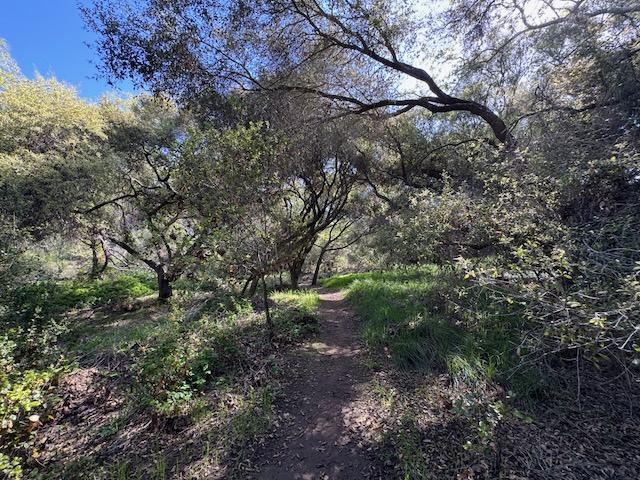 There had been a rain about a week ago, and the trails were mostly dry, beneath the tree tunnel studded with oaks.