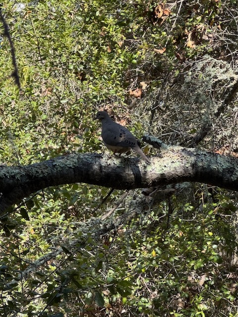 I noticed a lonesome dove sheltering in the shady tree branches and shrubs.