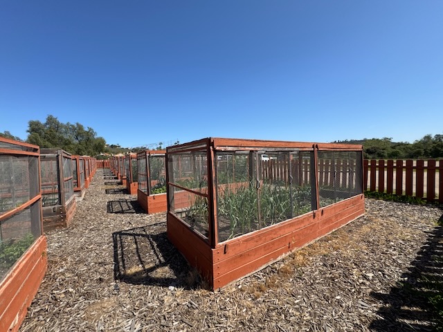 There are some interesting gardens, shielded from critters with wire mesh enclosures.