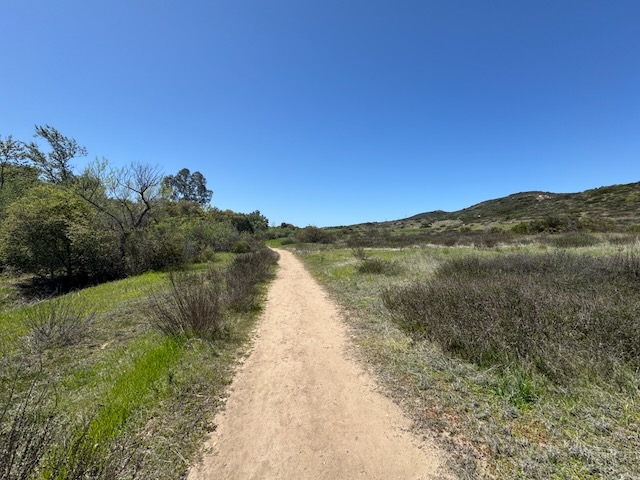 Once in the canyon I was greeted by lush green grass in every direction. Spring was here in San Diego. There was a short and gradual climb at the beginning of the hike, up a hill.