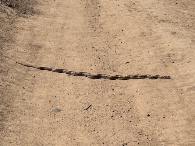 I saw this snake cross the road on the way back. I am not sure what kind, but it was not a rattler…whew!