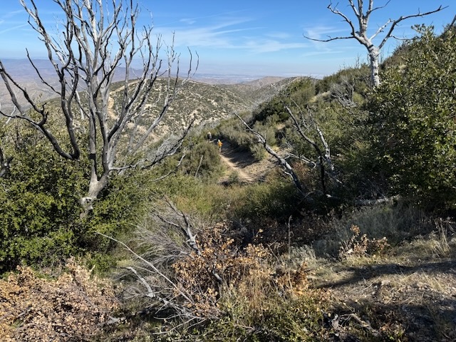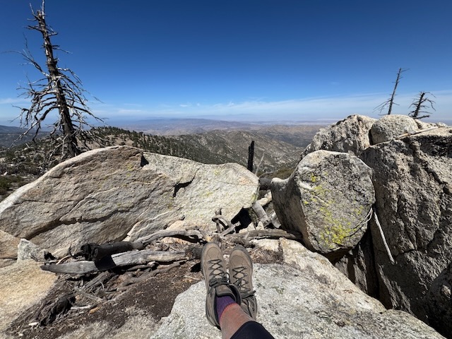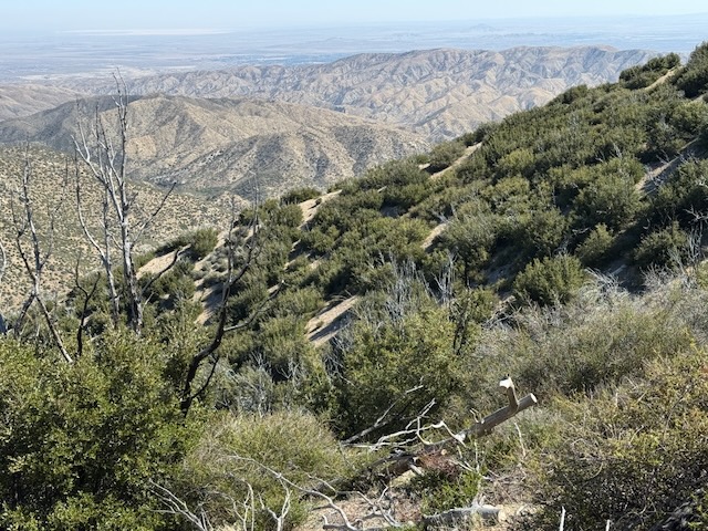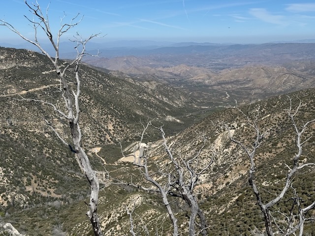 As I climbed higher along the cliff sides, I took in the scenic views of the distant desert to the north, burned manzanitas, bleached grey, a reminder of the power of fire, ever present in the California mountains.