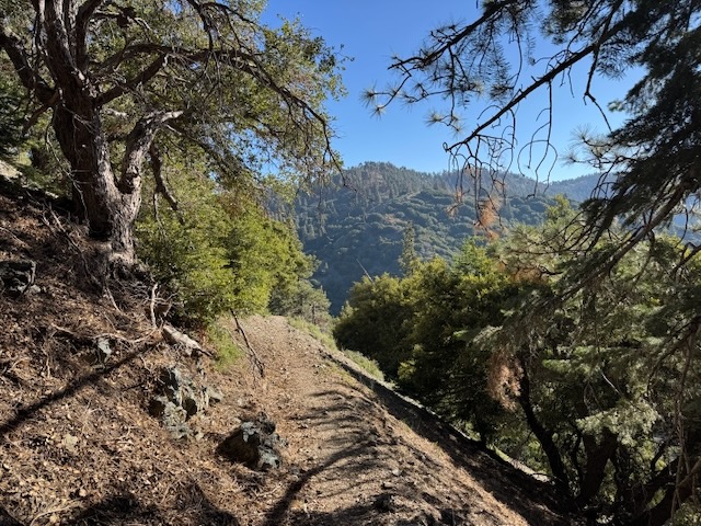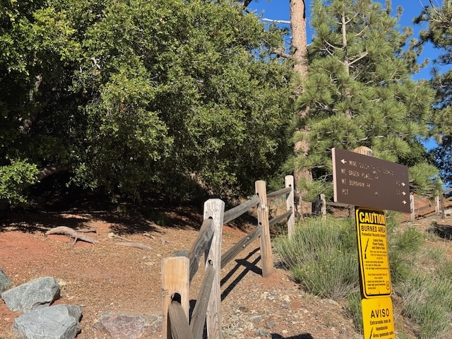 So here I was again, at the parking area at the trailhead to Mount Baden Powell, named for Lord Baden Powell, founder of the Boy Scouts. I parked across the street displaying my forest service pass, to avoid paying a $5 fee to Big Pines, who maintain the restrooms and parking lot there.