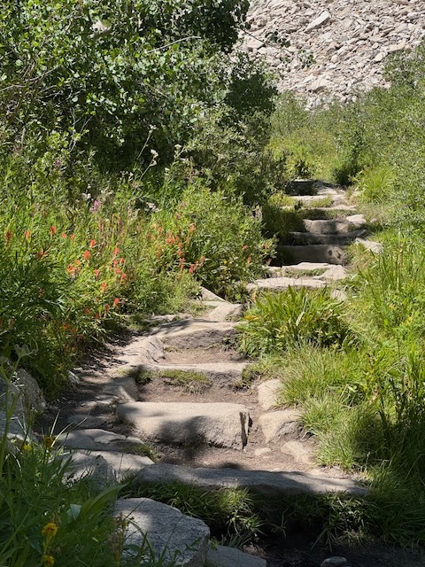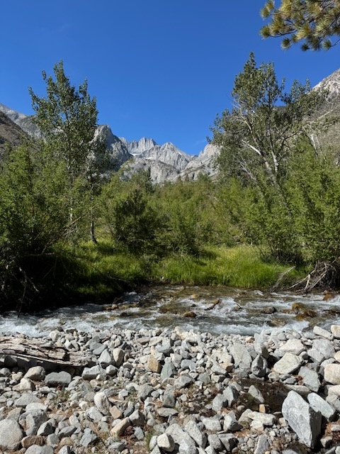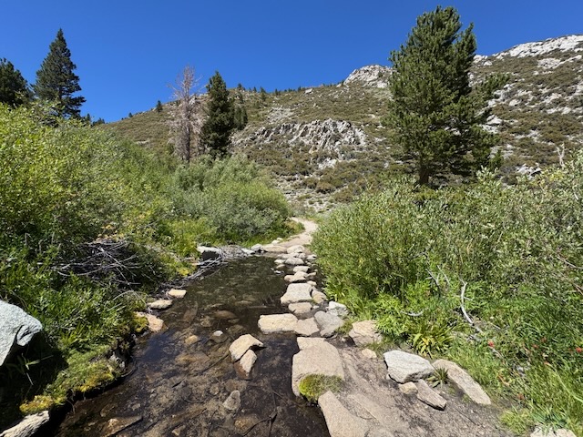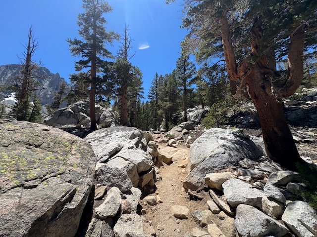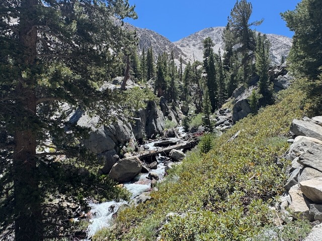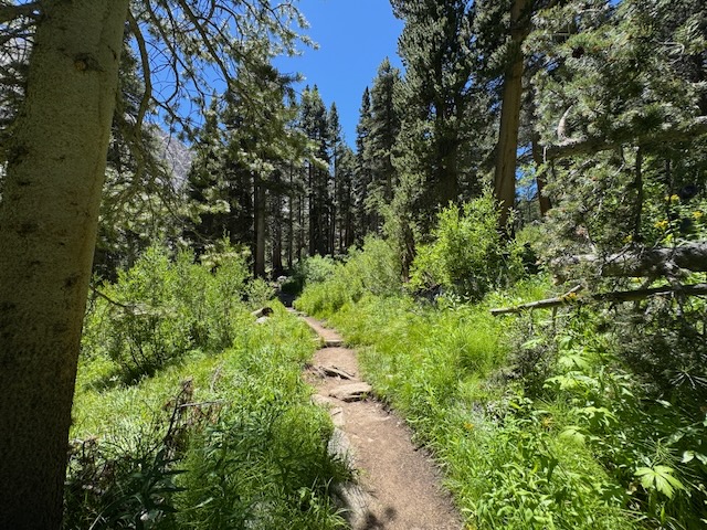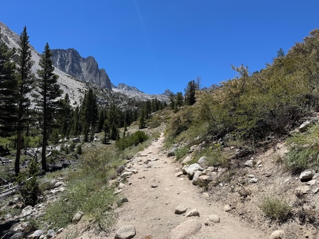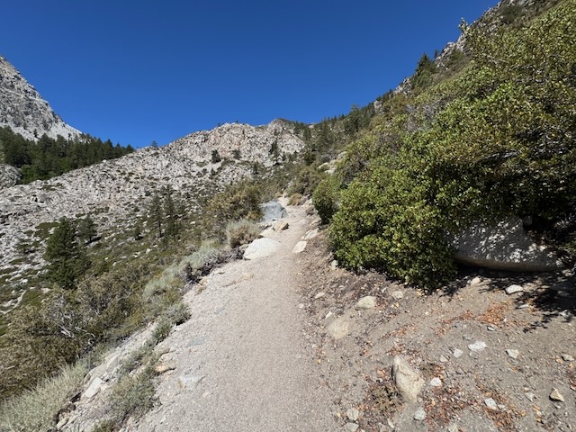 Now I was back on the trail to Big Pine Lakes. There are two options, an upper and a lower trail. I chose the lower trail, along the creek, which had more shade. It was already starting to feel hot out.