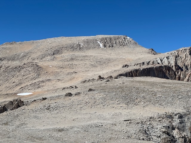 It was not about 3:15 pm, and late in the day when I began my descent, leaving this alpine wonderland behind. I could spot many day hikers in the distance, making their way back from Mount Langley, making long switchbacks down its face. So after briefly exploring the area around the pass, I bid New Army Pass and Mount Langley farewell.