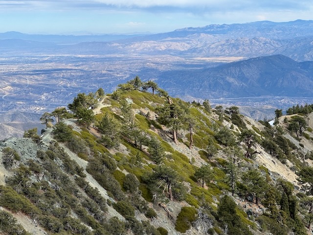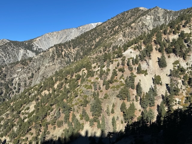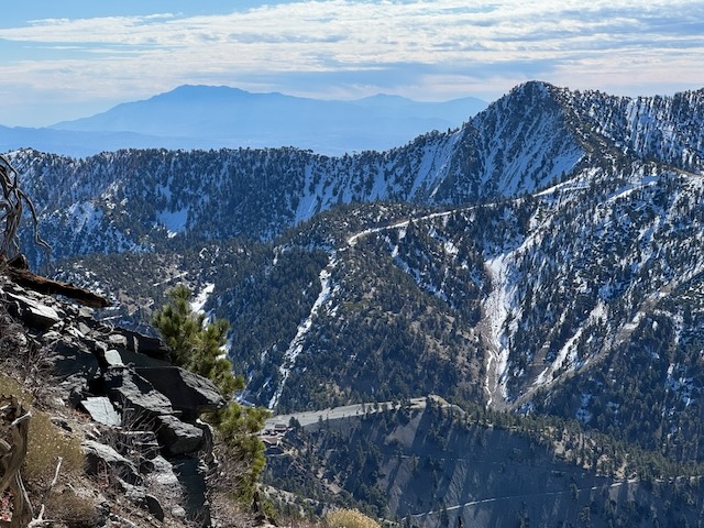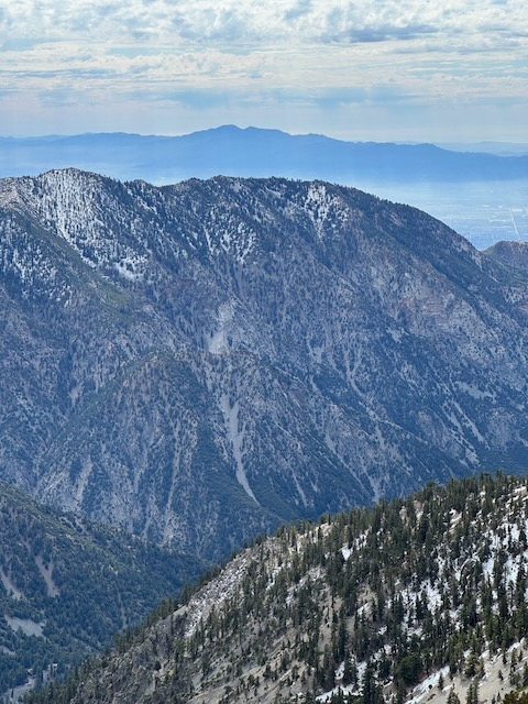 The view’s got better and better as I climbed, looking back once more on Telegraph Peak and Thunder Mountain, along with the snow covered runs of Mount Baldy Resort.
