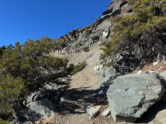 I continued along the rocky terrain, passing by what would be the alternate side trail composed of more gentle switchbacks (which I would end up taking on back down).