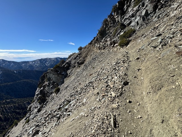 It felt like springtime as I edged along the skinny trail, with the sunny south face, snow-free.