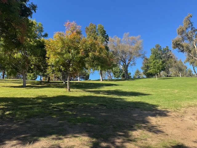 The recreation area lakeside park is filled with shady trees, grass and park benches. I parked right by it, when I hiked to Mount Woodson.
