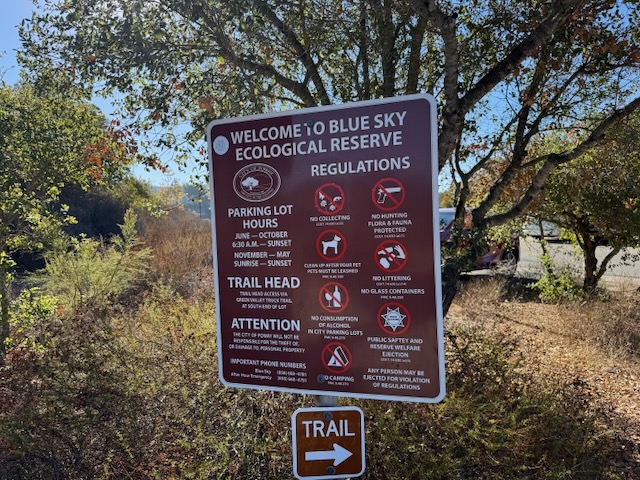 I arrived at the parking area for Blue Sky Ecological Reserve about 9:45 am. I had done a bit of research online, and found the reserve was open from sunrise to sunset, during this time of the year, and that the parking was also free.