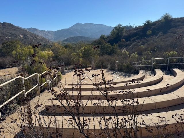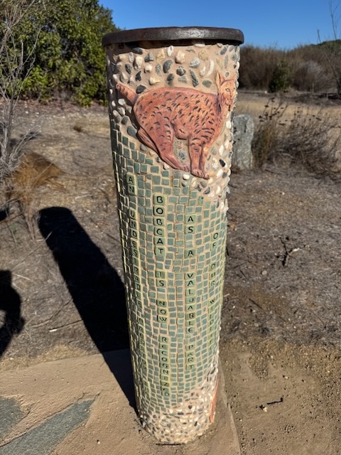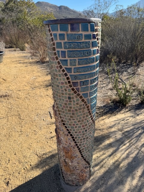 After a minute or two, I came upon a small amphitheater, designed for naturalist talks with school groups, with interpretive signs, sculptures and mosaics surrounding it.