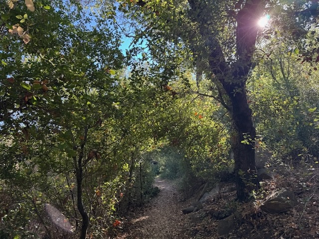 The trail would rotate between sun and shade, as I entered another canopy of oaks, edging closer to the turnoff, for Lake Poway. An alternate option, with more uphill, was Lake Ramona. Today, I had settled on Lake Poway, for a 6 mile loop.