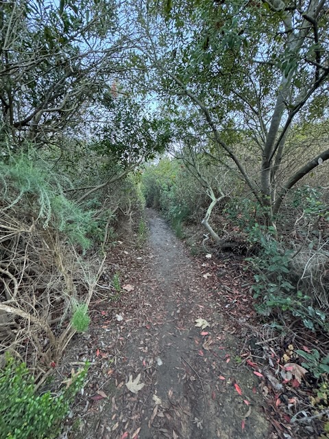 It was a fairly narrow trail through a coastal canyon, with densely packed vegetation.
