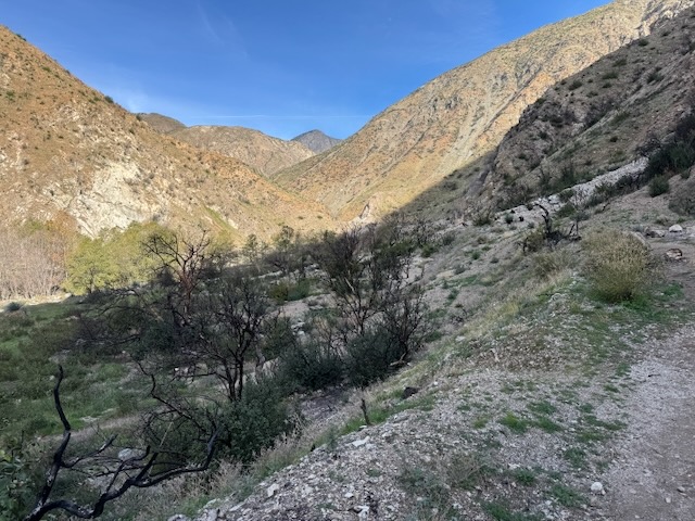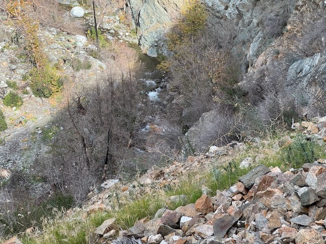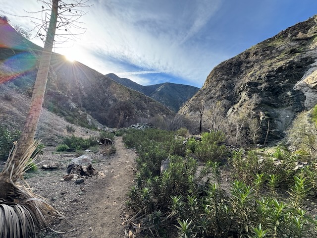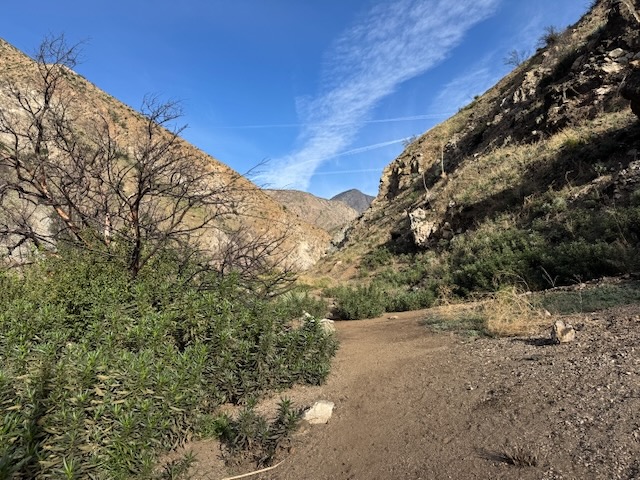 So I had just been waiting for the right opportunity, when the weather was cooler, and the trail would be dry, along with not too muddy. The opportunity had finally seemed to present itself. I did feel a sense of time being of the essence as well. I had planned to take on this 10 mile trek in fall, before the river began to swell too much from winter rains. I knew the atmospheric river that was approaching would likely wipe out the trails, and cause landslides in this burn scar. There had not been any significant rain since the fires a year prior, so I knew the time was now, to venture toward this mysterious bridge to nowhere.