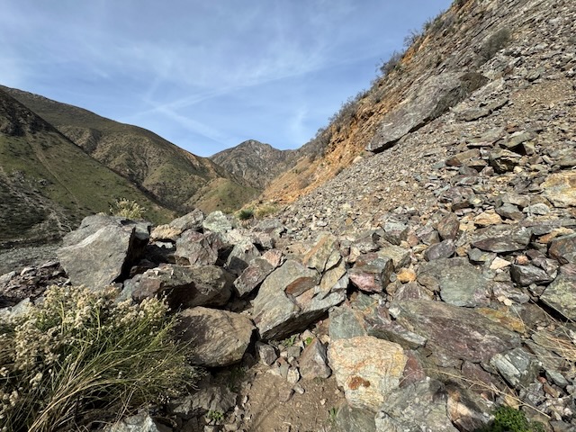 Once back on the trail to the bridge, I crossed over a hefty sized rockfall, a testament to the power of nature and the inherent dangers of hiking through a canyon such as this.