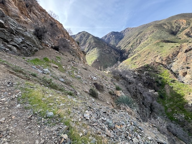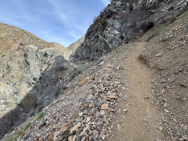 The last pass to the bridge was by far the sketchiest, and this is where I encountered a trail that was one foot and dropping straight off. Was I hiking in the Sierra? It surely felt like that for a moment while here.